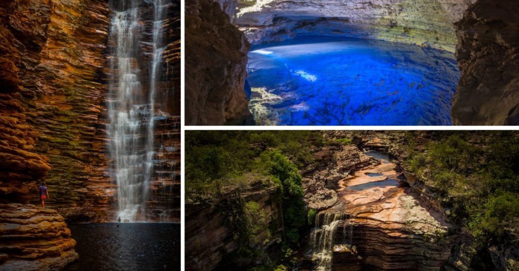 Los viajeros pueden hacer senderismo hasta lugares emblemáticos como la cascada de Fumaça o explorar cuevas subterráneas con formaciones de cristal.